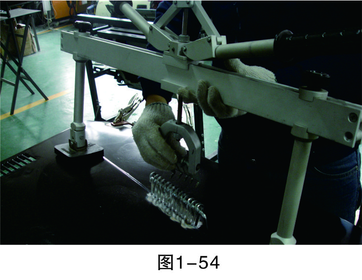 步驟4(焊介子):焊接介子,利用鈑金修復機把介子焊接到待修板件上,方便之后的拉拔作業(yè),如圖1-45所示。