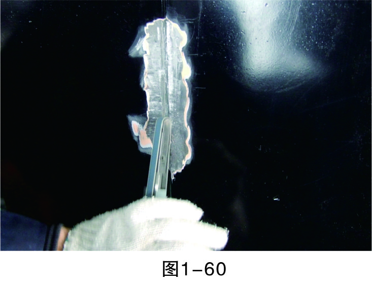 步驟3(除漆):打磨漆層,至板件金屬裸露后進行清潔,然后再進行鈑金作業(yè),如圖1-44所示。