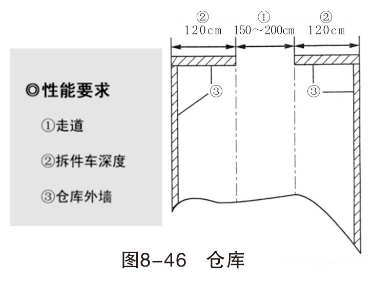 一個好的鈑金作業(yè)區(qū),必須要有一個良好的板件拆卸零件和材料倉庫來配合,使整個廠區(qū)整潔。倉庫面積大約是鈑金工位的2~3倍即可。如圖8-46所示。