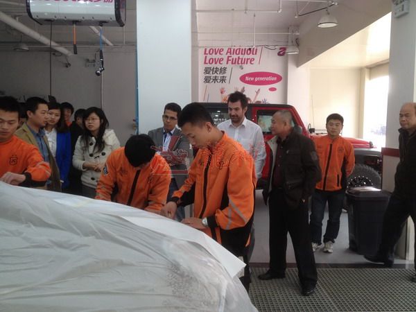 2013年特邀國外專家赴北京車爵士演示車縫泡膠條的使用 本司訊:2013年4月北京晴空萬里,龍神公司特邀英國專家一行五人,來到了北京車爵士進(jìn)行汽車噴涂遮蔽技術(shù)交流。首先公司一行了解車爵士的汽車噴涂情況及詢問了使用的遮蔽工具情況。隨后英國專家針對(duì)在汽車噴漆時(shí)難噴涂的車門縫隙、玻璃死角等地方的專業(yè)遮蔽工具的演示。車縫泡沫膠:用于車身所有縫隙的遮蔽,有效隔離及遮蔽漆霧噴入車縫里。 2013-04-08 11982