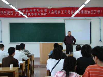 由珠海市龍神有限公司與廣東科學(xué)技術(shù)職業(yè)學(xué)院共同舉辦的“汽車涂裝技術(shù)及裝備”首期免費培訓(xùn)班,于2007年4月16日順利開課。