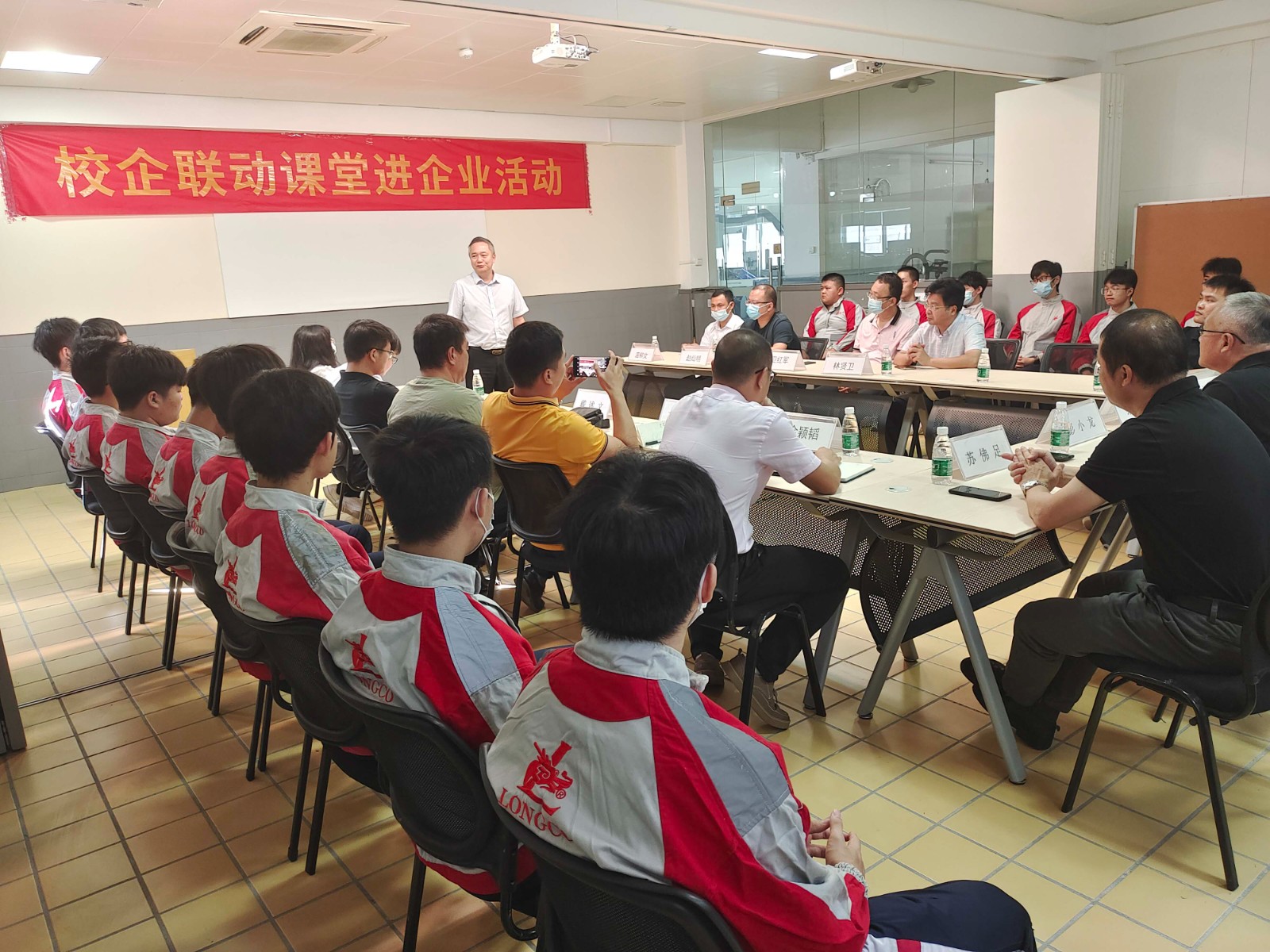 本次活動地點(diǎn)為珠海市龍神有限公司培訓(xùn)部,出席活動的領(lǐng)導(dǎo)和嘉賓有珠海市龍神有限公司彭小龍董事長、蘇佛足總經(jīng)理、我校梁柏健校長、劉春龍副校長、實(shí)訓(xùn)與對外交流處副主任余穎濤,以及龍神公司培訓(xùn)老師陳嘉深、張冬冬、黃偉聰,職教橋?qū)<尹S濤、詹曉婷,我校汽車專業(yè)部部長石也言、衛(wèi)紅軍老師、趙燦明老師、溫柳文老師、戴述文老師及20車身班全體同學(xué)。